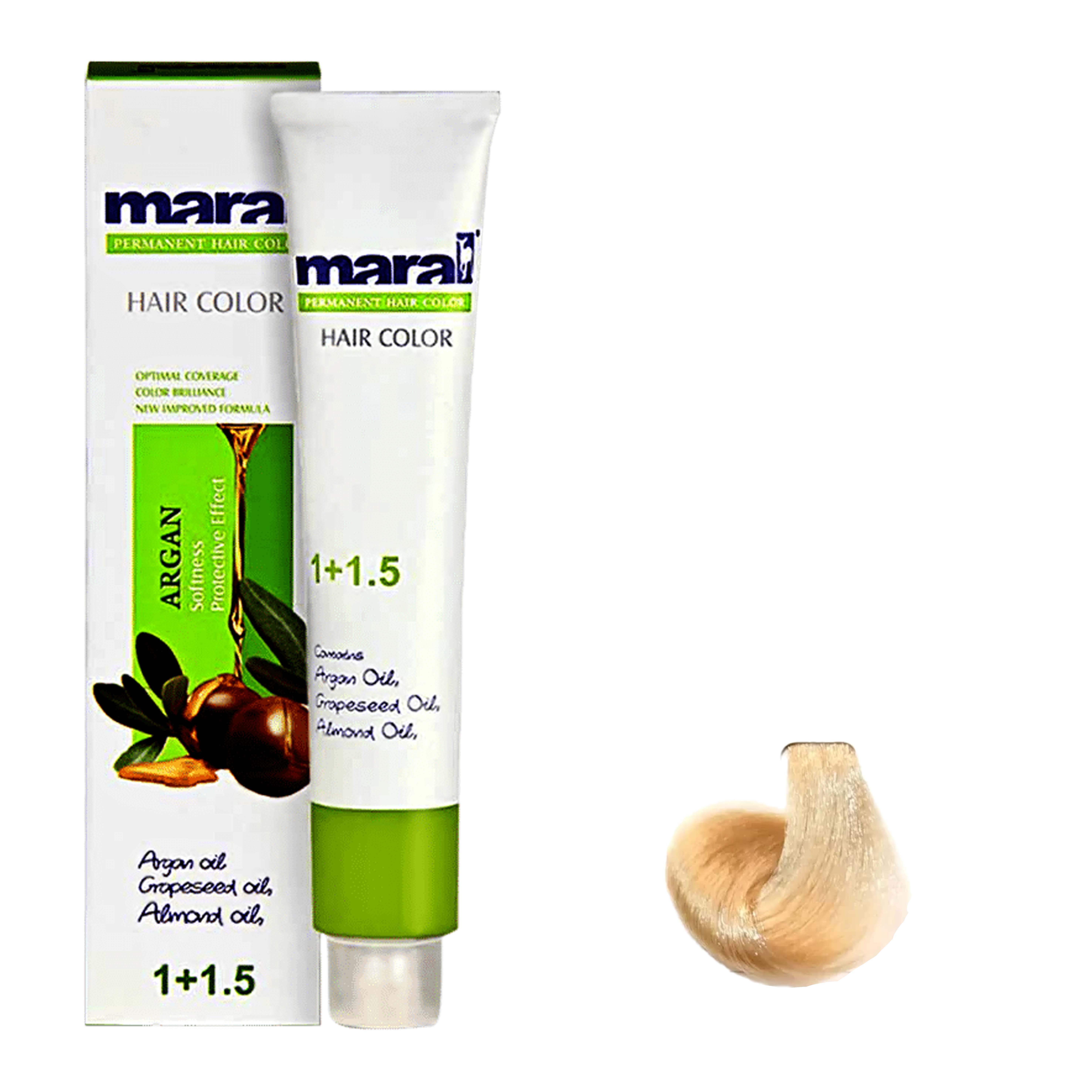رنگ موی مارال حاوی روغن بادام و روغن هسته انگور و روغن آرگان می باشد.