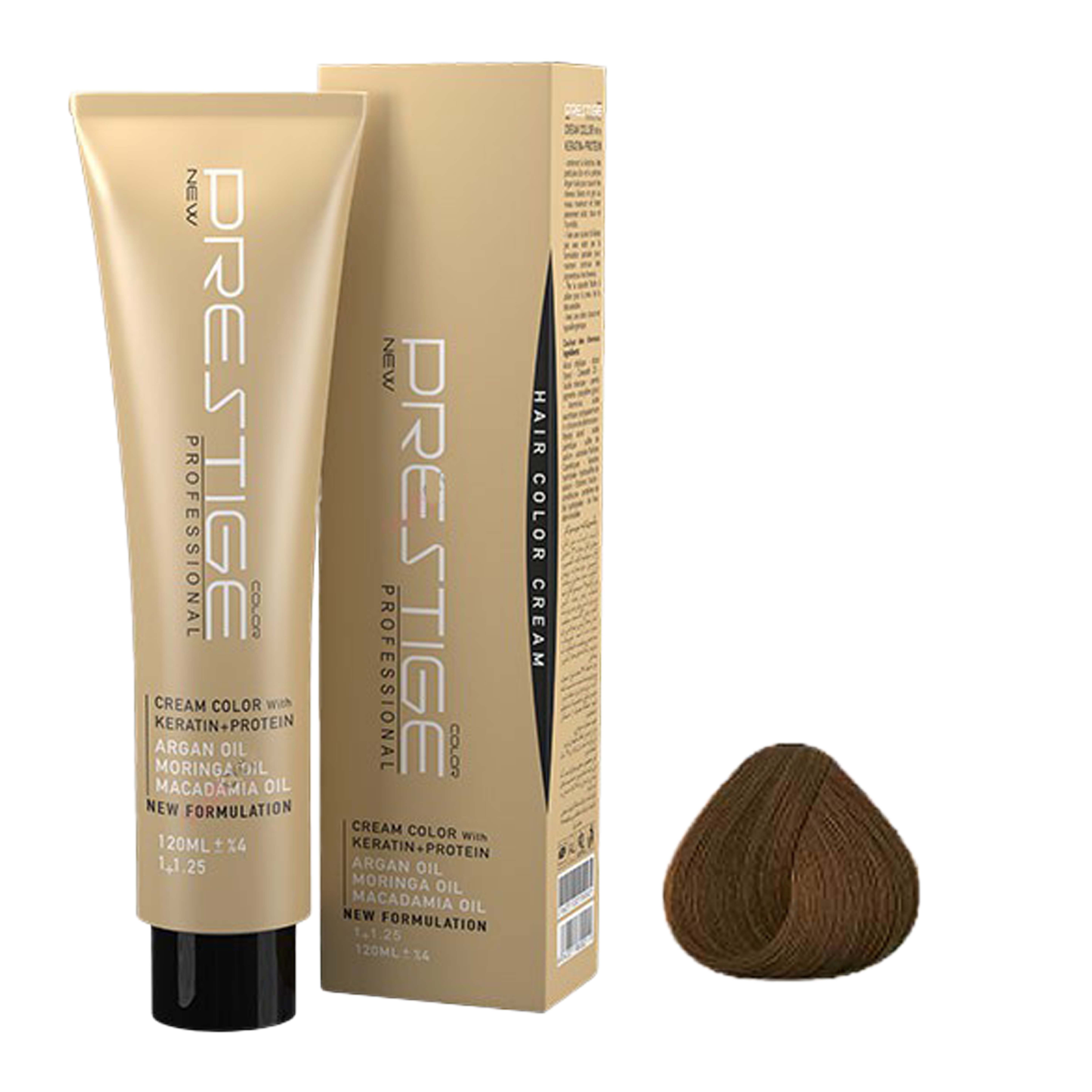 رنگ موی پرستیژ حاوی کراتین و پروتئین بوده و پوشش دهی و ماندگاری بسیار بالایی دارد بطوری که عمیقا به داخل مو نفوذ کرده و رنگی بادوام و درخشنده را به ارمغان می آورد. این محصول در برابر اشعه ماورا بنفش محافظ بوده و حاوی ویتامین E-C است که موجب نرم شدن موها می شود.