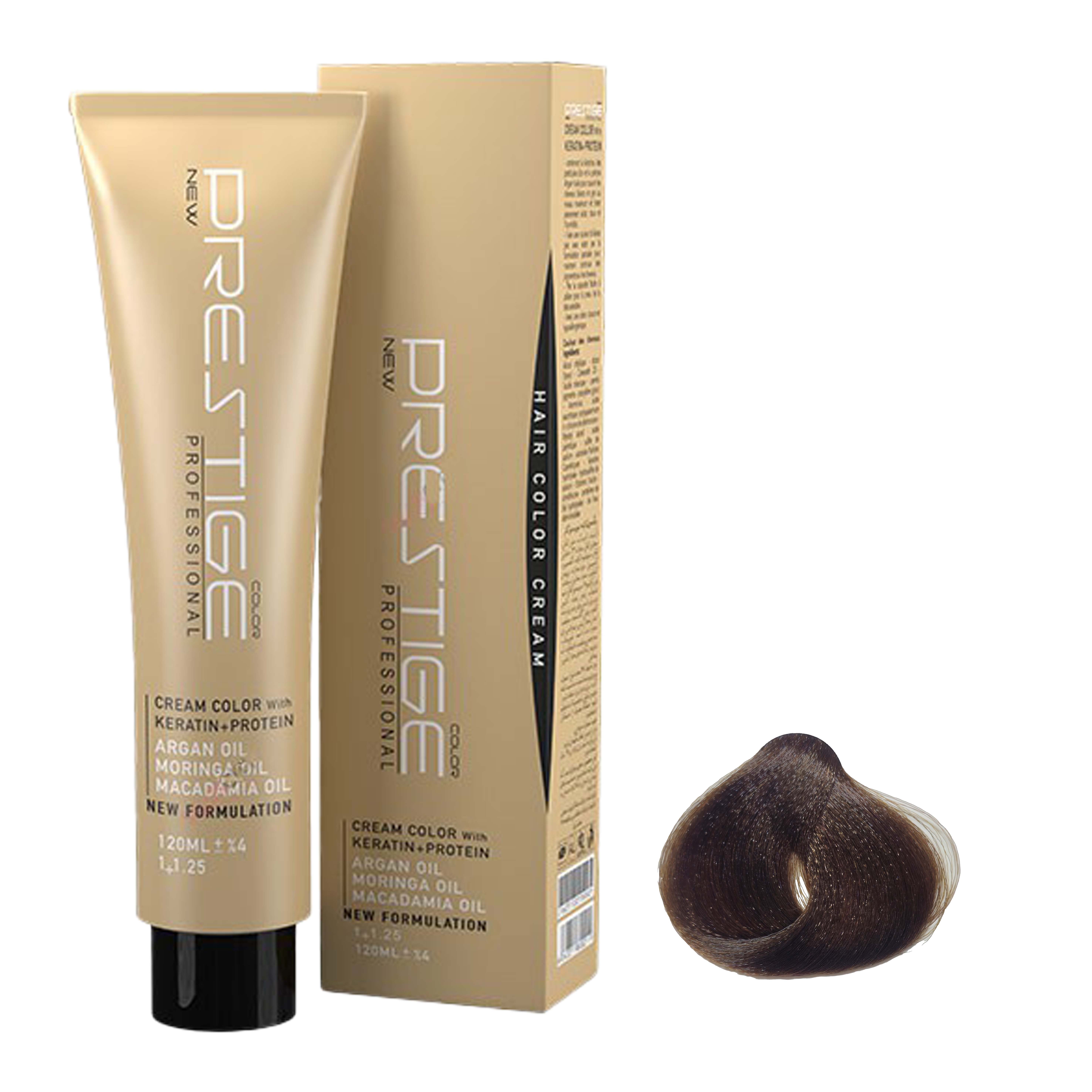 رنگ موی پرستیژ حاوی کراتین و پروتئین بوده و پوشش دهی و ماندگاری بسیار بالایی دارد بطوری که عمیقا به داخل مو نفوذ کرده و رنگی بادوام و درخشنده را به ارمغان می آورد. این محصول در برابر اشعه ماورا بنفش محافظ بوده و حاوی ویتامین E-C است که موجب نرم شدن موها می شود.