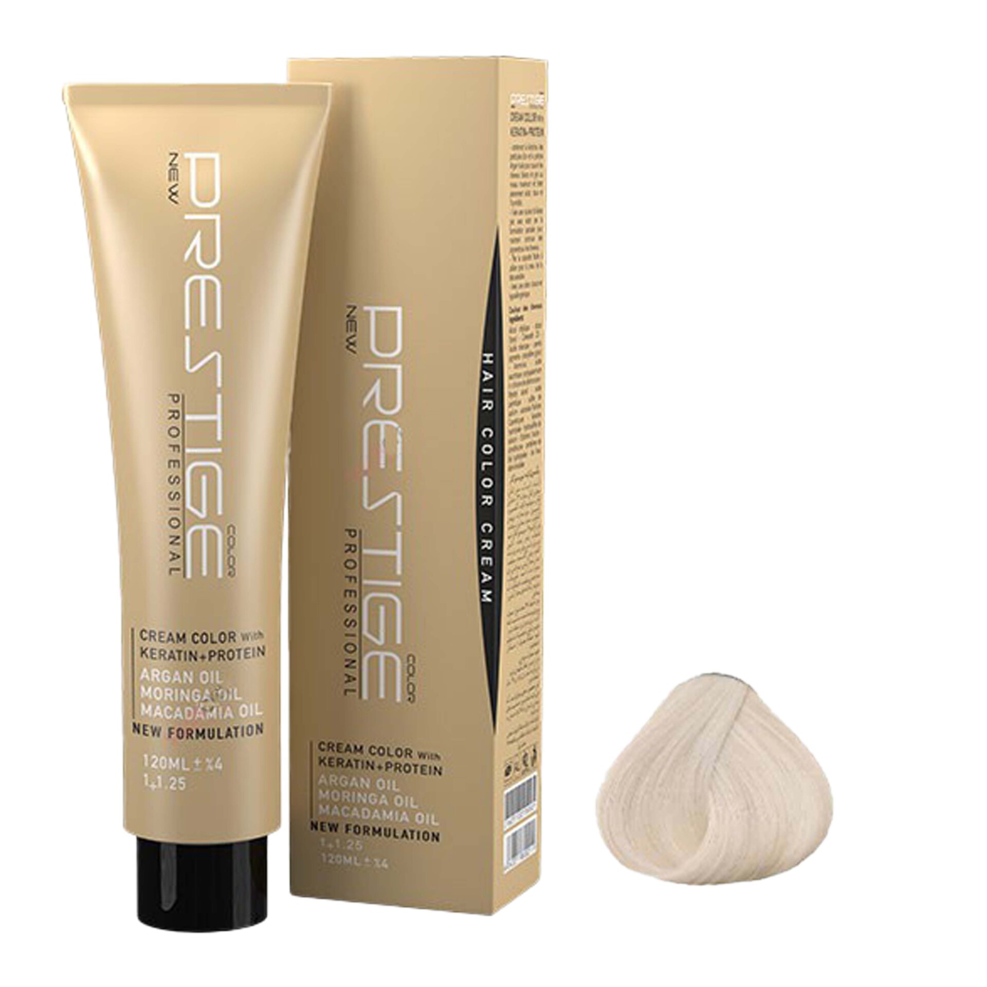 رنگ موی پرستیژ حاوی کراتین و پروتئین بوده و پوشش دهی و ماندگاری بسیار بالایی دارد بطوری که عمیقا به داخل مو نفوذ کرده و رنگی بادوام و درخشنده را به ارمغان می آورد. این محصول در برابر اشعه ماورا بنفش محافظ بوده و حاوی ویتامین E-C است که موجب نرم شدن موها می شود.