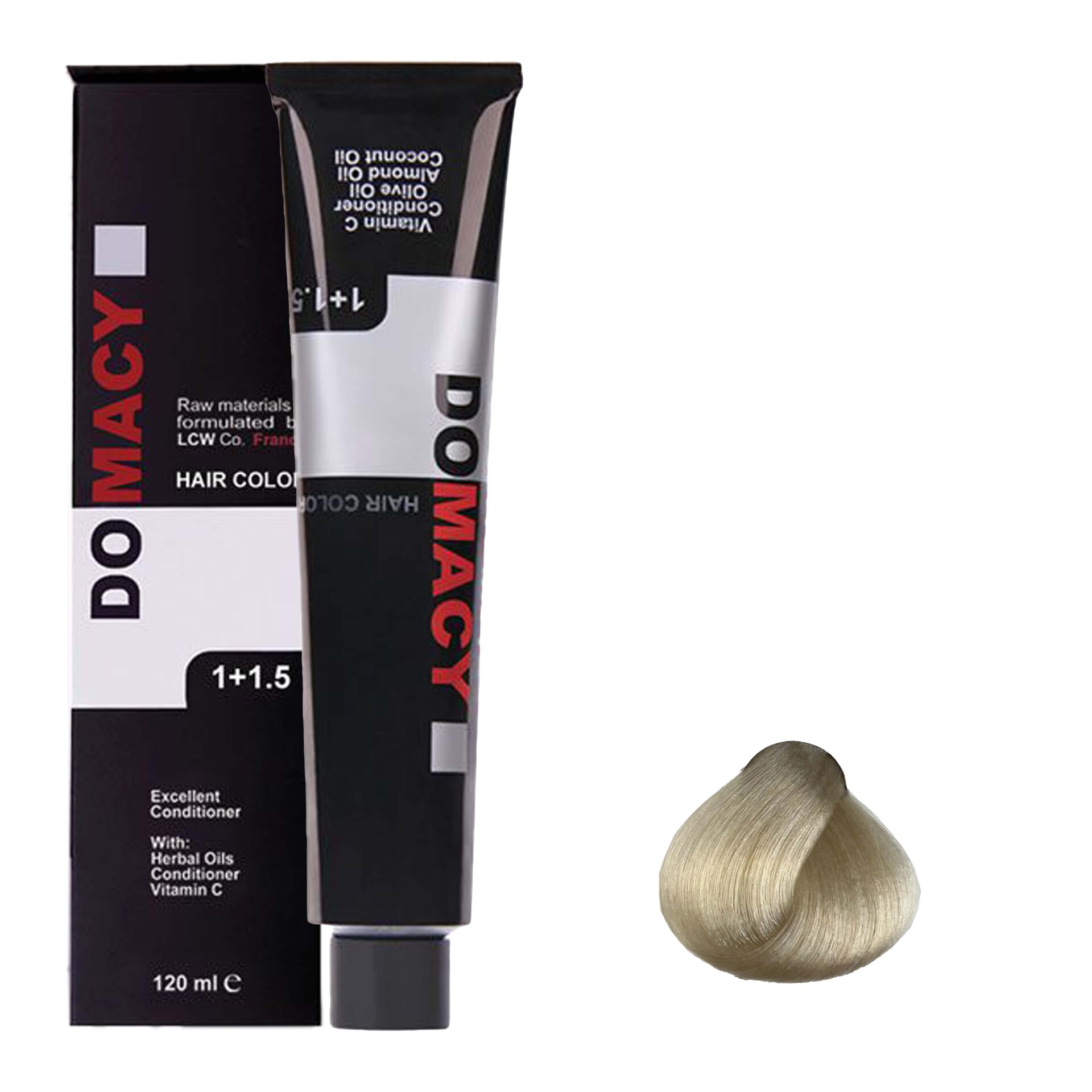 رنگ موی دوماسی محصولی ایرانی و بسیار باکیفیت و پر طرفدار است. این محصول حاوی ویتامین C است و به راحتی از آسیبدیدگی موها جلوگیری میکند. دوماسی حاوی مواد نرمکننده است، که بلافاصله پس از استفاده تاثیر آن را بر روی موهای خود احساس میکنید. از دیگر ویژگیهای این رنگ مو میتوان به دارا بودن عصاره آلوئهورا، ماندگاری بالای رنگ، پوشانندگی کامل موهای سفید و دارا بودن روغن کنجد و زیتون اشاره کرد. رنگ موی دوماسی DOMACY یک رنگ موی جدید با غلظت بالا و رنگ دهی عالی برای پوشش موهای سفید می باشد.
