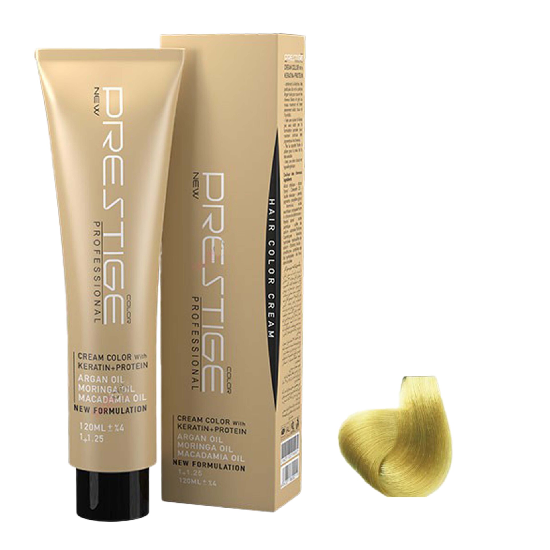 رنگ موی پرستیژ حاوی کراتین و پروتئین بوده و پوشش دهی و ماندگاری بسیار بالایی دارد بطوری که عمیقا به داخل مو نفوذ کرده و رنگی بادوام و درخشنده را به ارمغان می آورد. این محصول در برابر اشعه ماورا بنفش محافظ بوده و حاوی ویتامین E-C است که موجب نرم شدن موها می شود.
