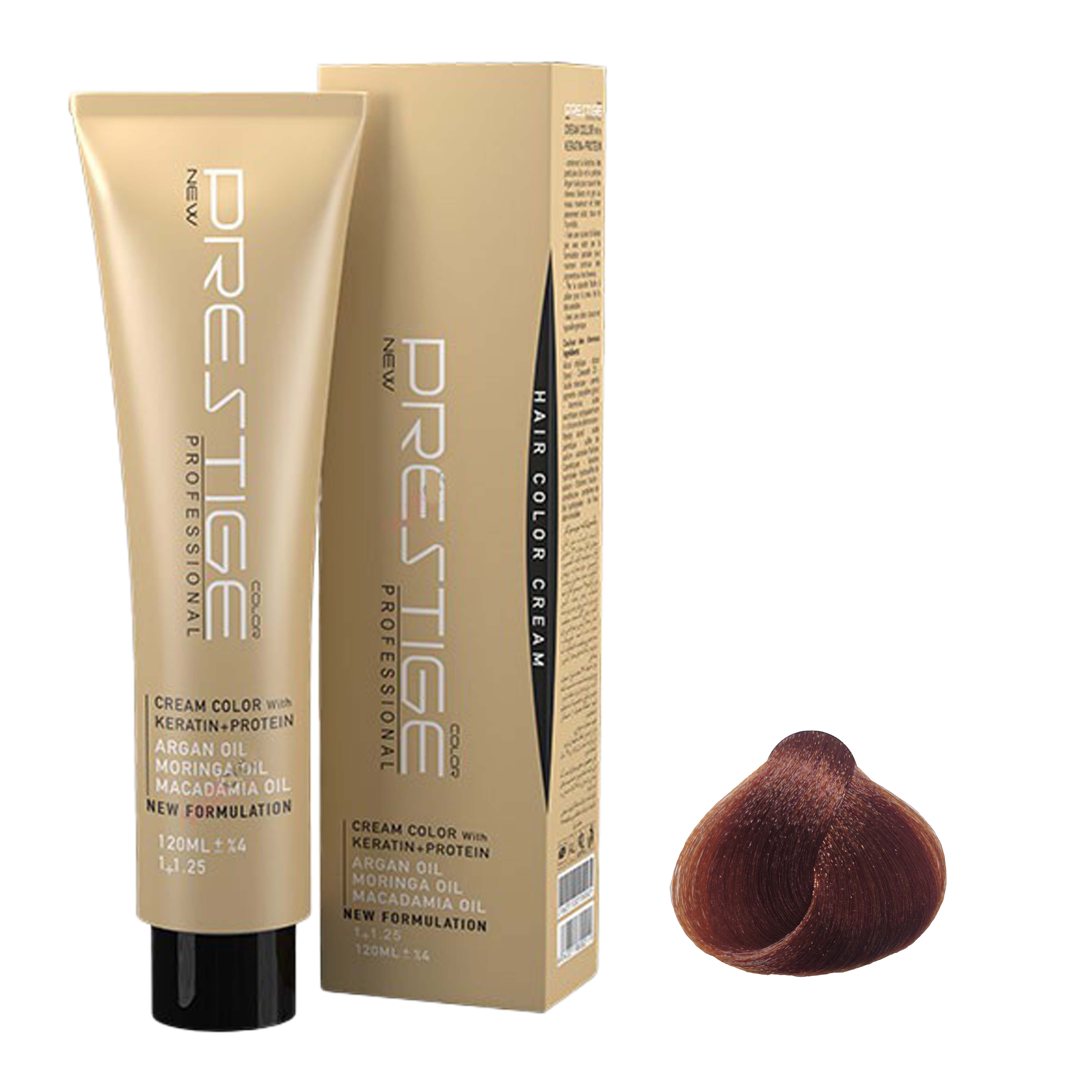 رنگ موی پرستیژ حاوی کراتین و پروتئین بوده و پوشش دهی و ماندگاری بسیار بالایی دارد بطوری که عمیقا به داخل مو نفوذ کرده و رنگی بادوام و درخشنده را به ارمغان می آورد. این محصول در برابر اشعه ماورا بنفش محافظ بوده و حاوی ویتامین E-C است که موجب نرم شدن موها می شود.