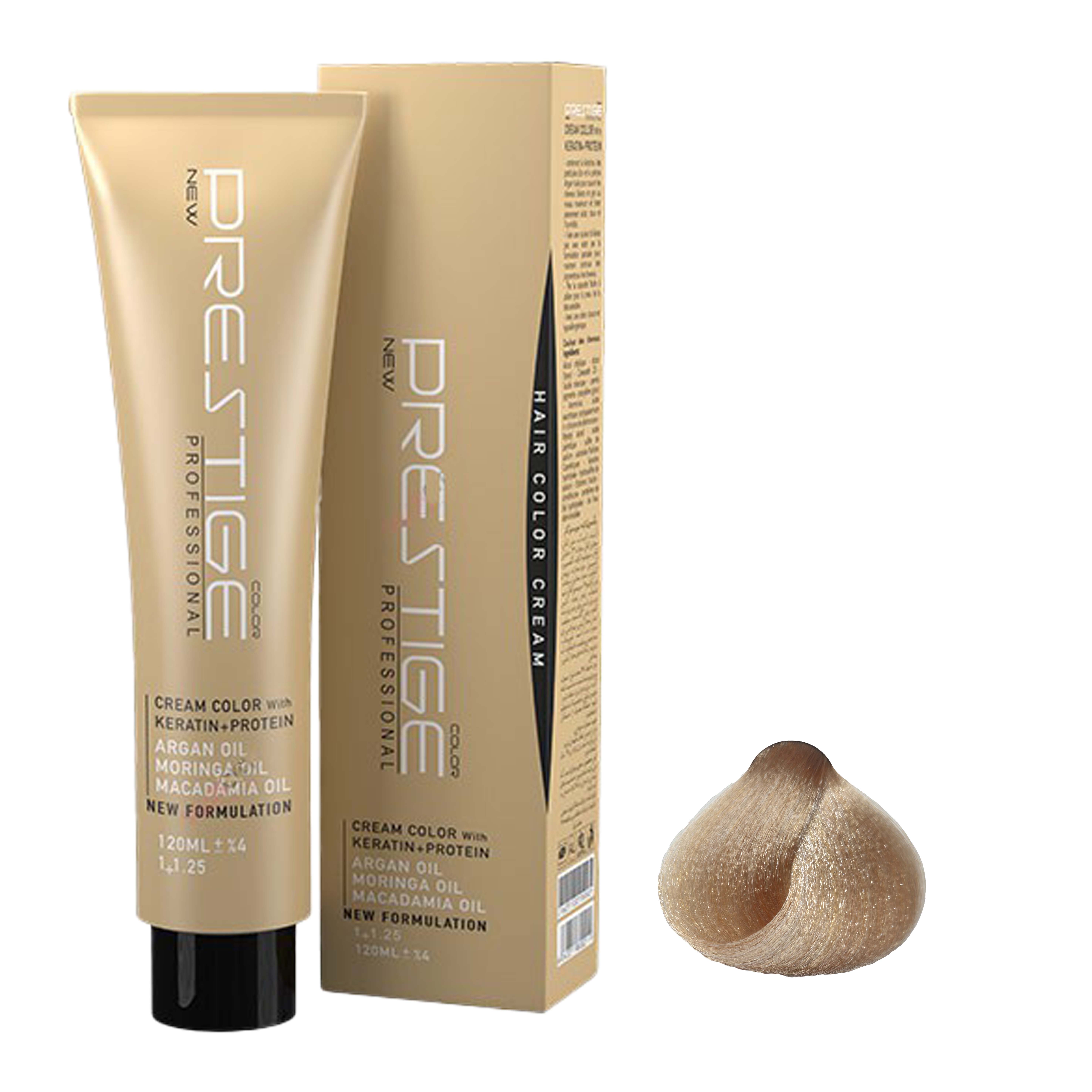 رنگ موی پرستیژ حاوی کراتین و پروتئین بوده و پوشش دهی و ماندگاری بسیار بالایی دارد بطوری که عمیقا به داخل مو نفوذ کرده و رنگی بادوام و درخشنده را به ارمغان می آورد. این محصول در برابر اشعه  ماورا بنفش محافظ بوده و حاوی ویتامین E-C  است که موجب نرم شدن موها می شود.