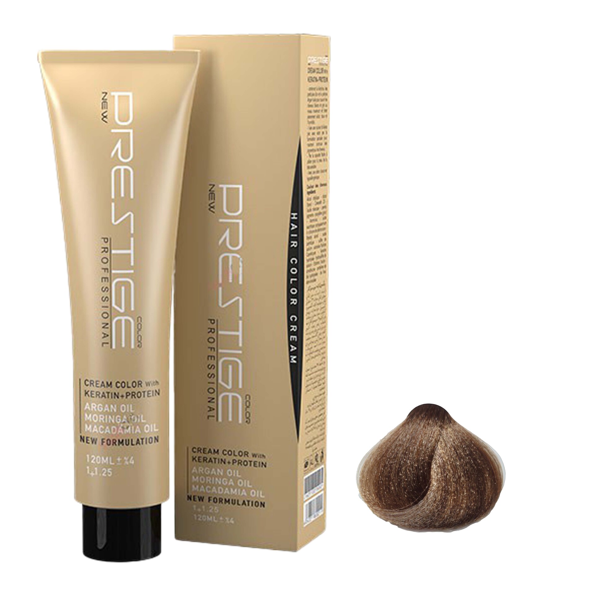 رنگ موی پرستیژ حاوی کراتین و پروتئین بوده و پوشش دهی و ماندگاری بسیار بالایی دارد بطوری که عمیقا به داخل مو نفوذ کرده و رنگی بادوام و درخشنده را به ارمغان می آورد. این محصول در برابر اشعه ماورا بنفش محافظ بوده و حاوی ویتامین E-C است که موجب نرم شدن موها می شود.