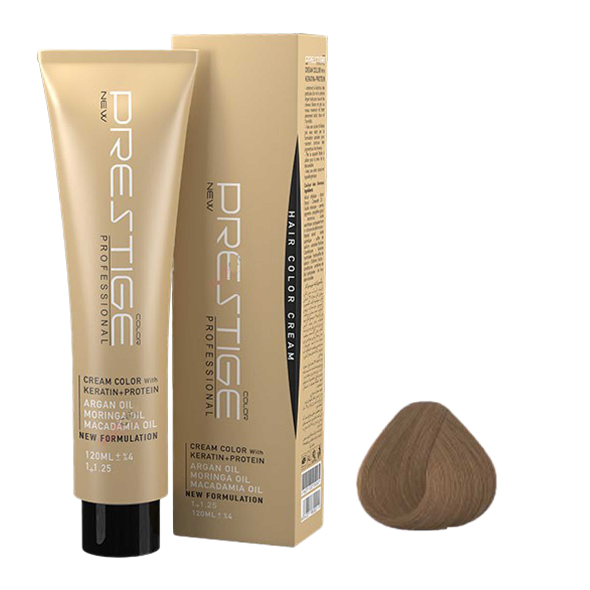 رنگ موی پرستیژ حاوی کراتین و پروتئین بوده و پوشش دهی و ماندگاری بسیار بالایی دارد بطوری که عمیقا به داخل مو نفوذ کرده و رنگی بادوام و درخشنده را به ارمغان می آورد. این محصول در برابر اشعه  ماورا بنفش محافظ بوده و حاوی ویتامین E-C  است که موجب نرم شدن موها می شود.