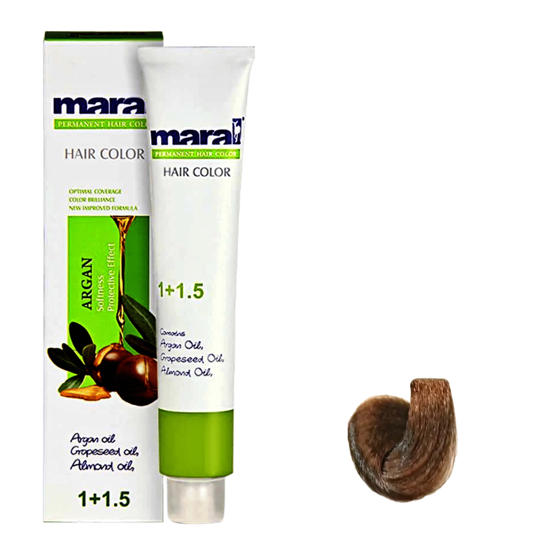 رنگ موی مارال حاوی روغن بادام و روغن هسته انگور و روغن آرگان می باشد.
