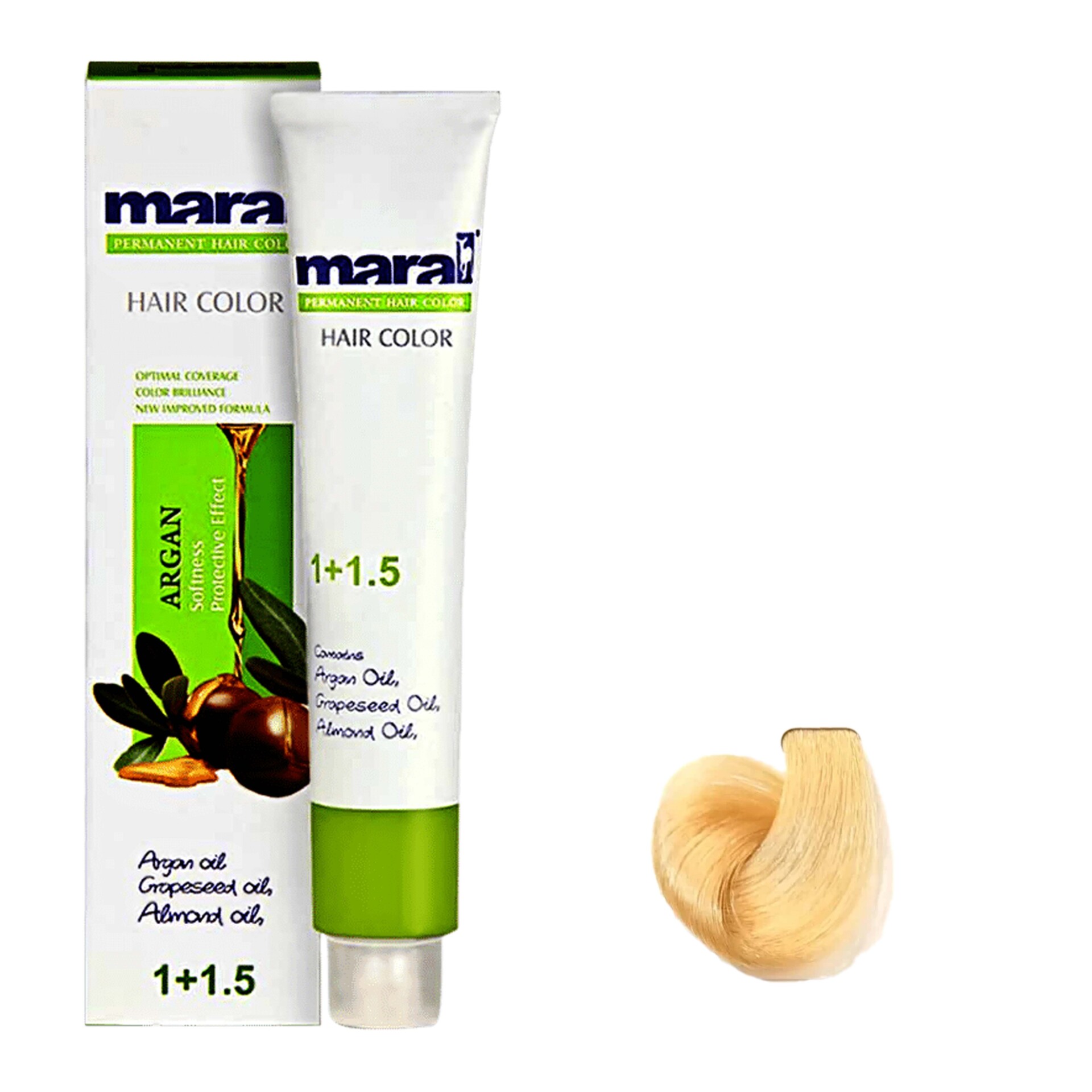 رنگ موی مارال حاوی روغن بادام و روغن هسته انگور و روغن آرگان می باشد.