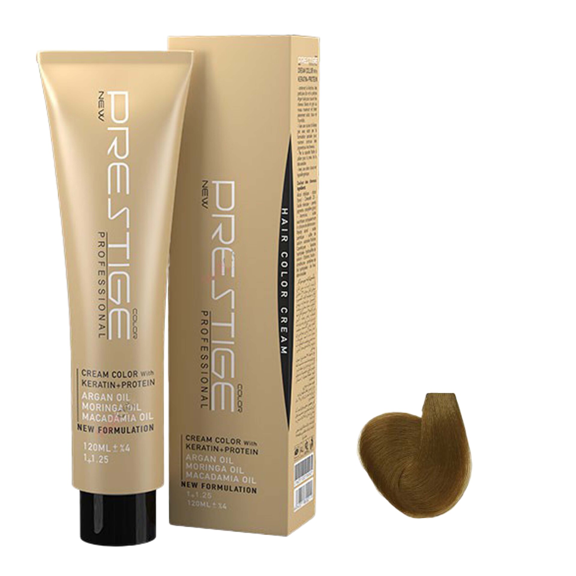 رنگ موی پرستیژ حاوی کراتین و پروتئین بوده و پوشش دهی و ماندگاری بسیار بالایی دارد بطوری که عمیقا به داخل مو نفوذ کرده و رنگی بادوام و درخشنده را به ارمغان می آورد. این محصول در برابر اشعه  ماورا بنفش محافظ بوده و حاوی ویتامین E-C  است که موجب نرم شدن موها می شود.