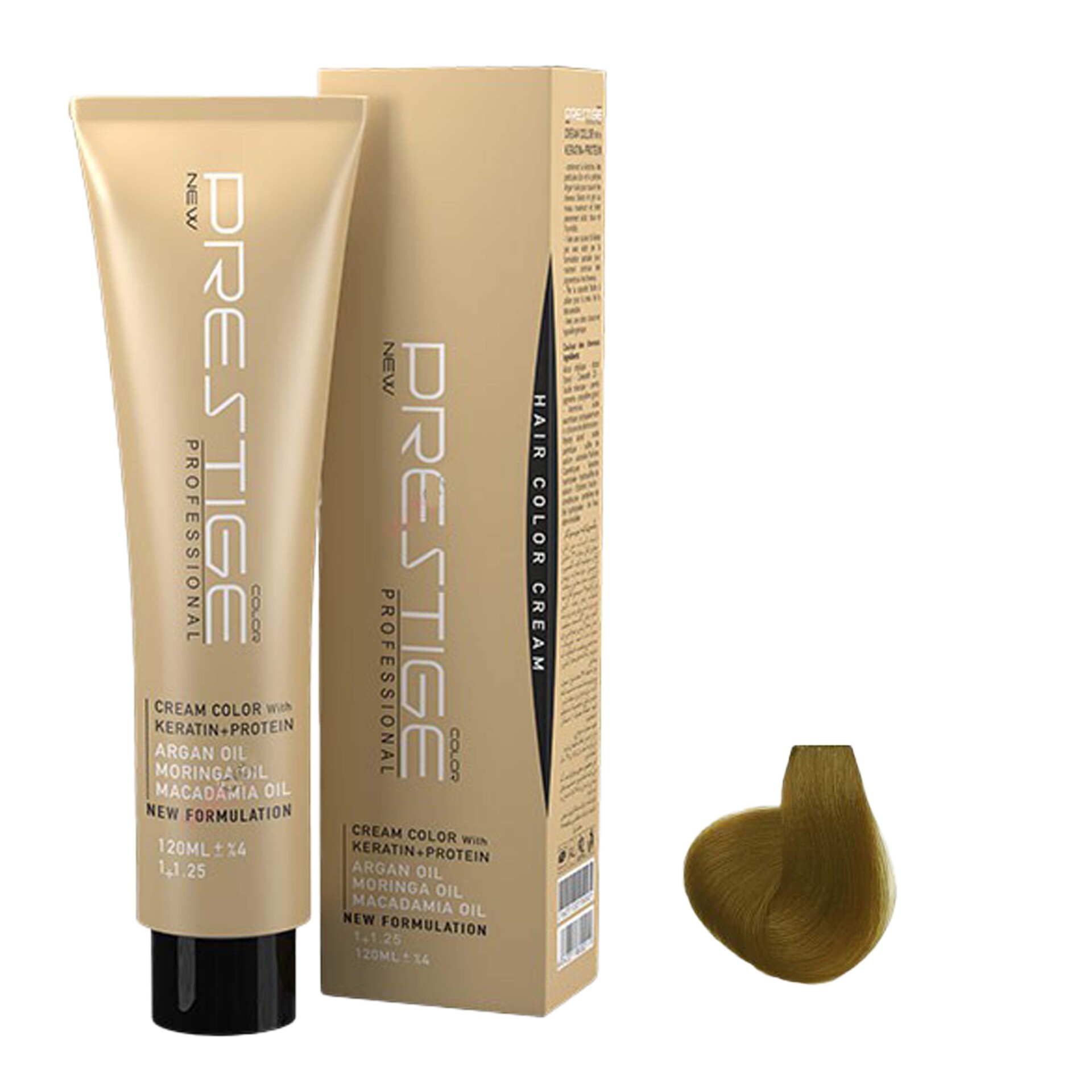 رنگ موی پرستیژ حاوی کراتین و پروتئین بوده و پوشش دهی و ماندگاری بسیار بالایی دارد بطوری که عمیقا به داخل مو نفوذ کرده و رنگی بادوام و درخشنده را به ارمغان می آورد. این محصول در برابر اشعه ماورا بنفش محافظ بوده و حاوی ویتامین E-C است که موجب نرم شدن موها می شود.